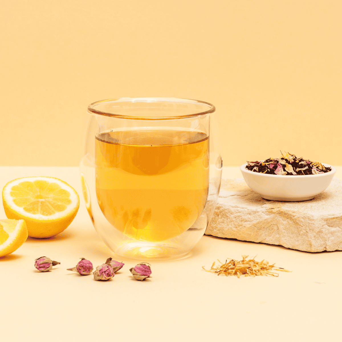 - mit lieblichen Rosenblüten, Zitronenstücken und einem Hauch Bergamotte