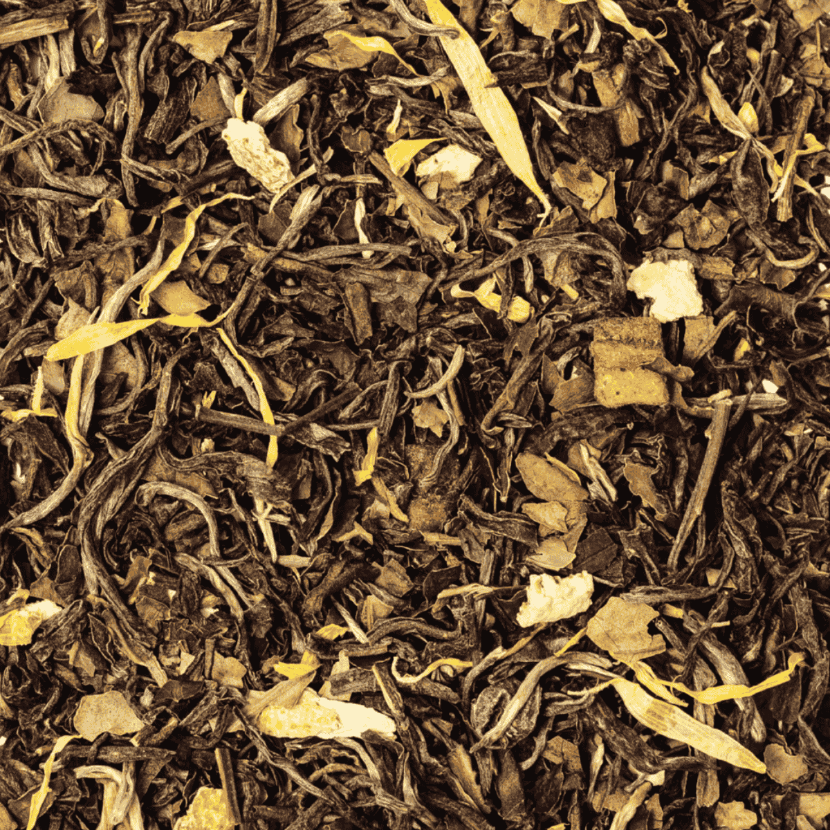 Weiße Tee-Mischung (aromatisiert) mit Früchte- und Vanillearoma. Zutaten: Weißer Tee* (89%), natürliche Aromen (Maracuja, Vanille, Orange, Zitrone), Orangenschalen* (3%), Papayastücke* (3%), Ringelblumenblüten*. *aus kontrolliert biologischem Anbau