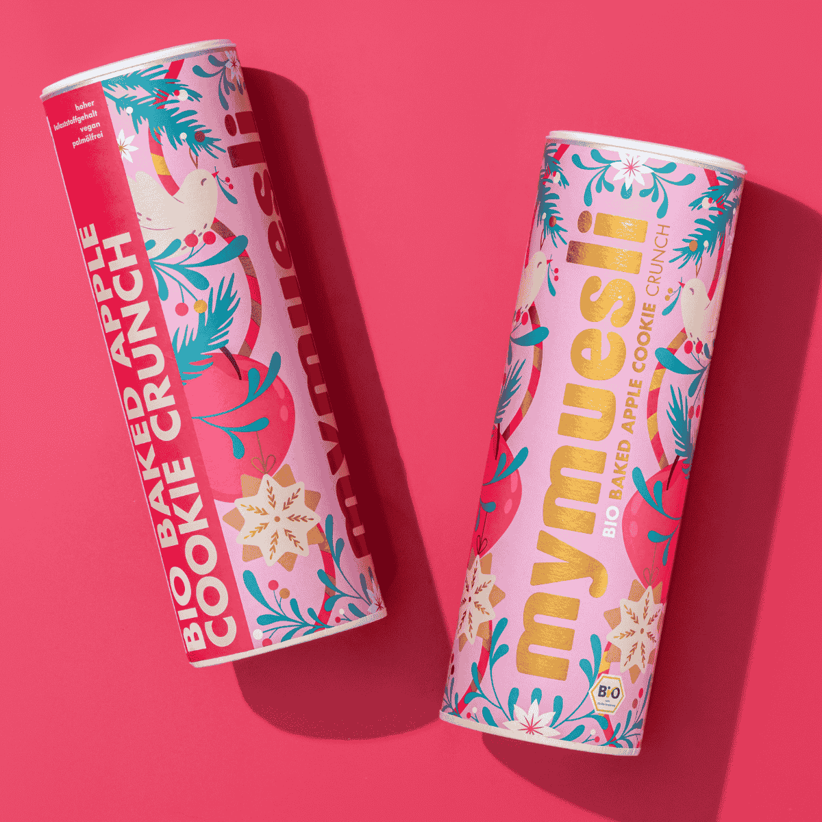 havervlokken, gebakkene havervlokken met kerstkruidenmix (30%) (volkoren havervlokken, rietsuiker, zonnebloemolie, rijstsiroop, rijstmeel, cacaopoeder, cacaomassa, gerstemoutmeel, kokosrasp, zeezout*, cacaoboter, kaneel, gemalen anijszaad, kruidnagel, koriander, kardemom), gedroogde appelstukjes (12%), gebakken appelkoekje met kruidenmix (10%) (tarwemeel, ruwe rietsuiker, zonnebloemolie, tarwezetmeel, appelpoeder, gehakte rozijnen, suikerrietmelasse, kruidenmengsel (volle rietsuiker, kokospalmsuiker, kaneel,